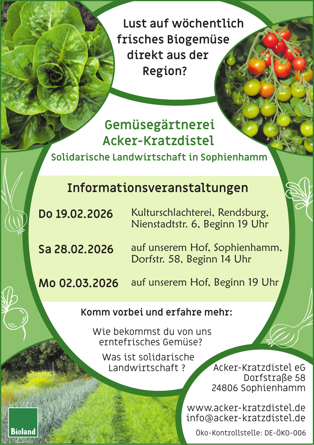 Für die Solawi werden große und kleine Ernteanteile für die Saison ab April bis März des Folgejahres vergeben. Die Anteile reichen je nach Größe für verschiedene Haushaltsgrößen (klein ca. 2 Personen, groß ca. 3–4 Personen), abhängig vom individuellen Gemüseverbrauch.