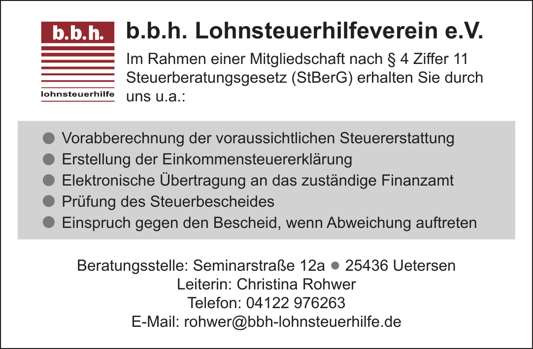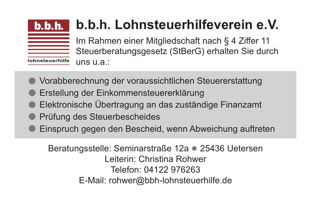 Quelle: rohwer.bbh-lohnsteuerhilfe.de - b.b.H Lohnsteuerhilfe e.V. Christina Rohwer