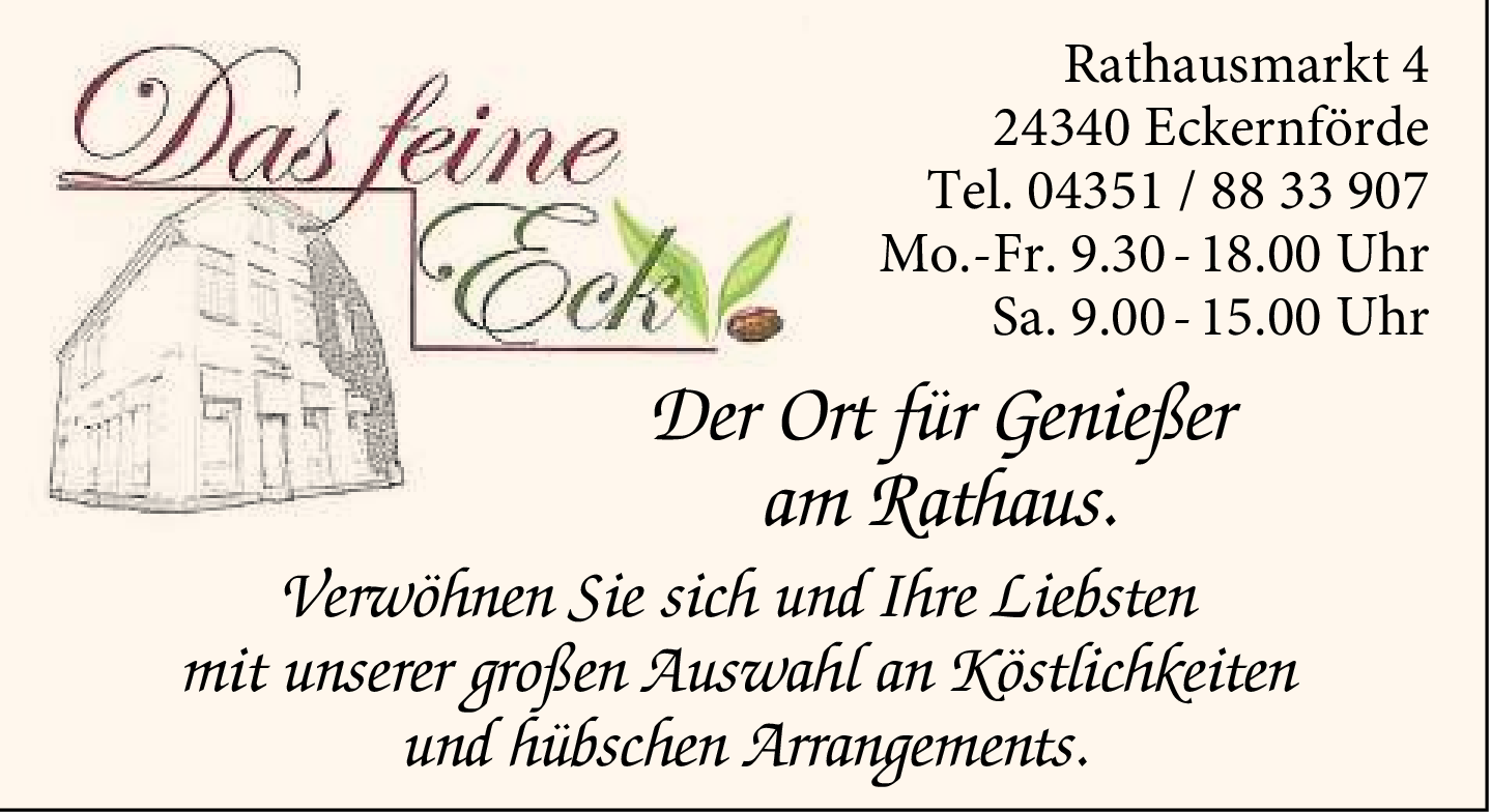 Das feine Eck in Eckernförde ist ein wahres Paradies für Genießer und Liebhaber erlesener Produkte. Gelegen am malerischen Rathausmarkt, hat sich dieses lokale Unternehmen als Anlaufstelle für Feinschmecker etabliert, die Qualität und Vielfalt zu schätzen wissen.