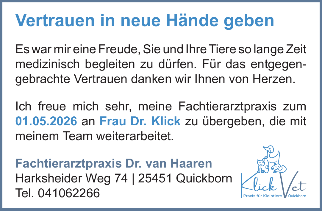 Quelle: vanhaaren-vet.de - Dr. med. vet. Roswitha van Haaren, Tierärztin Quickborn