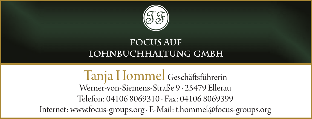 Sie können telefonisch unter 04106/80693-0 anrufen oder eine E-Mail an info@focus-groups.org senden, um einen Termin für die Buchhaltung oder Lohnbuchhaltung zu vereinbaren.