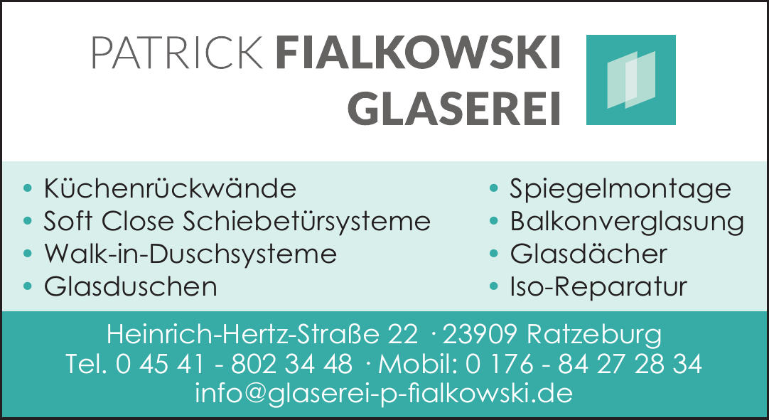 Die Glaserei Patrick Fialkowski bietet Neu- und Reparaturverglasungen, Glasdächer, Balkon- und Terrassenverglasungen, Ganzglastüren, Soft-Close Glasschiebetüren, maßgefertigte und individuelle Spiegel sowie Bleiverglasungen an.