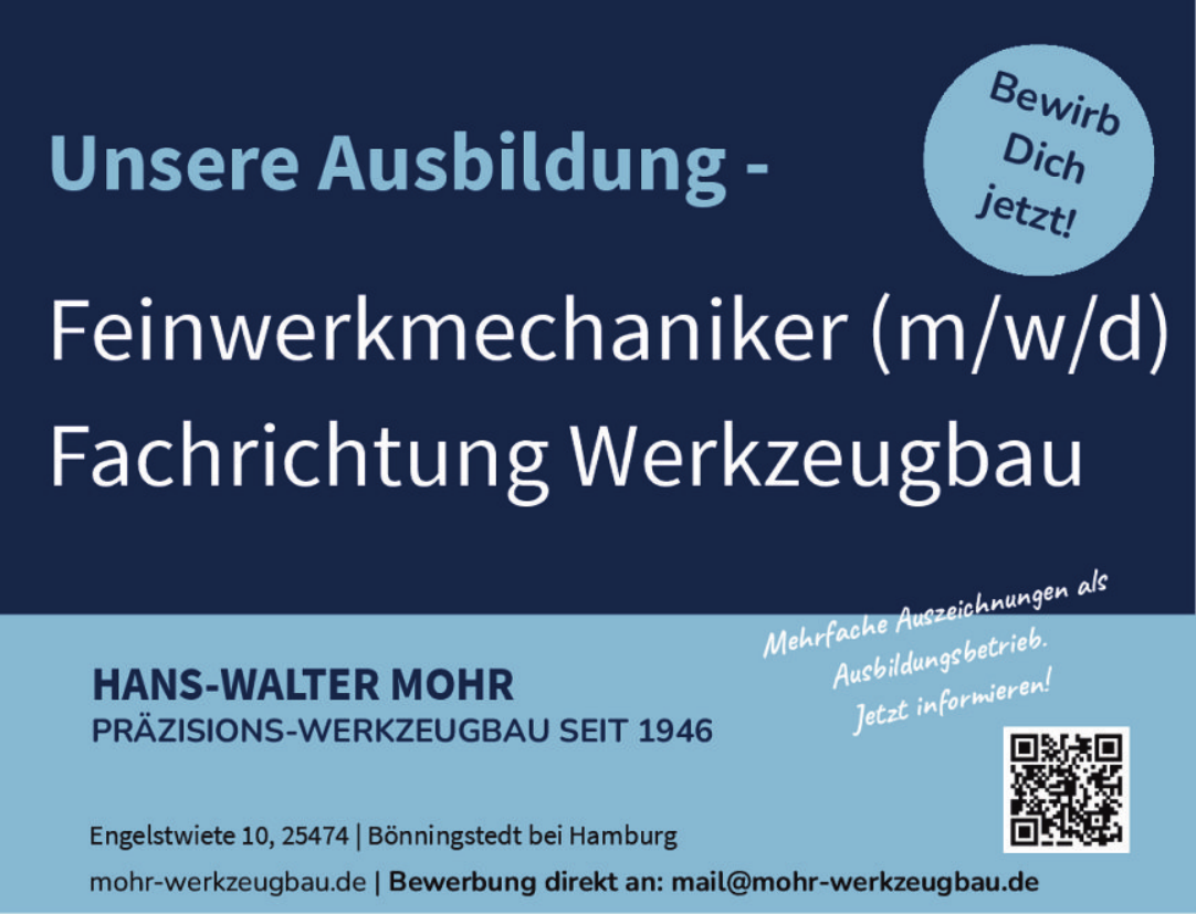 Mit jahrzehntelanger Erfahrung, familiärer Unternehmenskultur und der Spezialisierung auf hochwertige Einzelanfertigungen ist Hans-Walter Mohr ein wichtiger Bestandteil der Wirtschaft rund um Bönningstedt. Das Unternehmen steht für Präzision, maßgeschneiderte Lösungen und eine starke Ausbildungsorientierung im Werkzeugbau und der Feinwerktechnik.