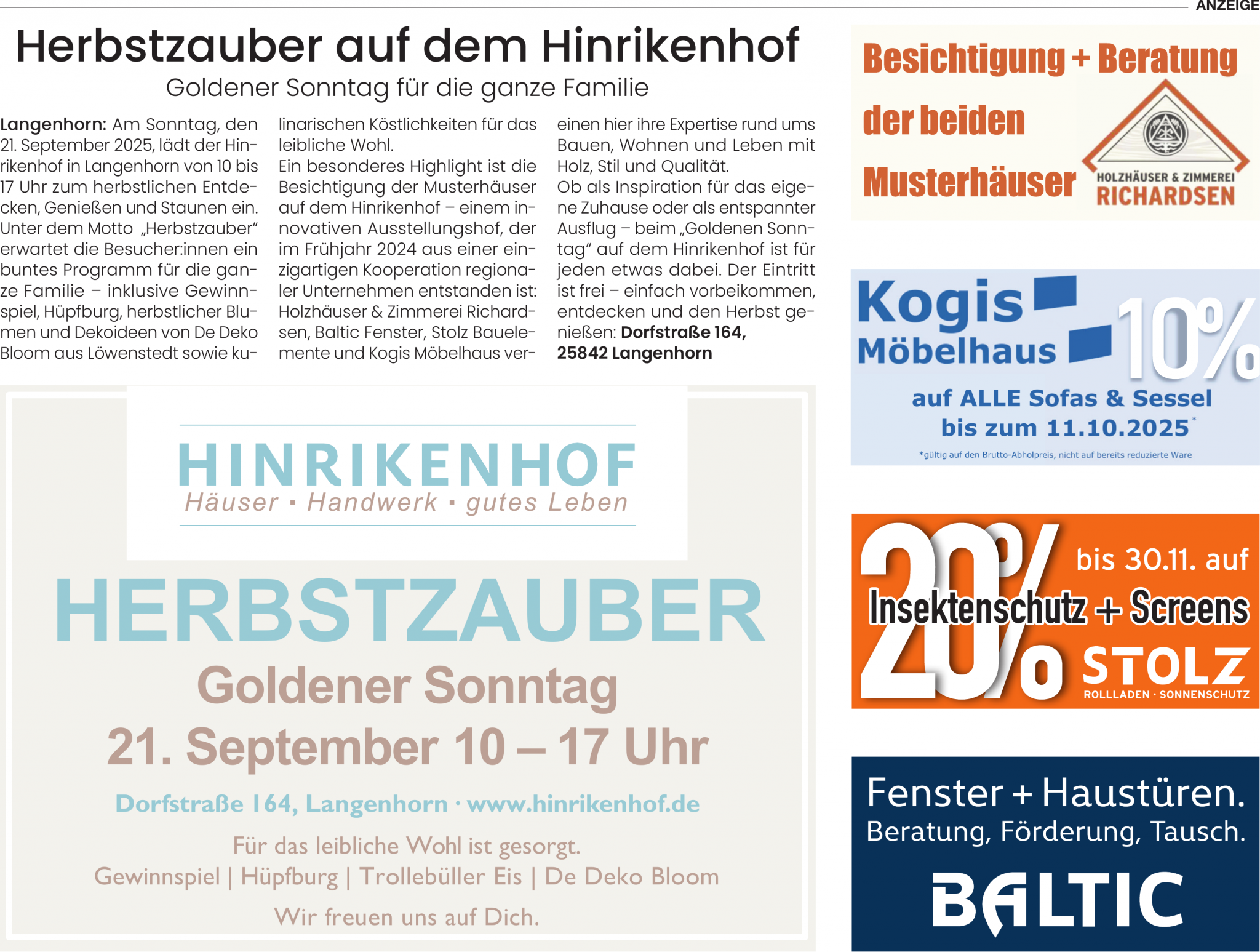 linarischen Köstlichkeiten für das leibliche Wohl. Ein besonderes Highlight ist die Besichtigung der Musterhäuser auf dem Hinrikenhof – einem innovativen Ausstellungshof, der im Frühjahr 2024 aus einer eint...