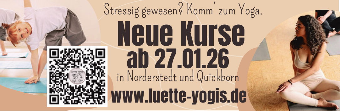 Lütte Yogis bietet das Angebot mobil in Norderstedt und Umgebung. Sie ist in den Räumen der Kirche Friedrichsgabe und der AWO Quickborn Heide zu Gast; Kursorte wie Bahnhofstr. 77, 22844 Norderstedt sind möglich.