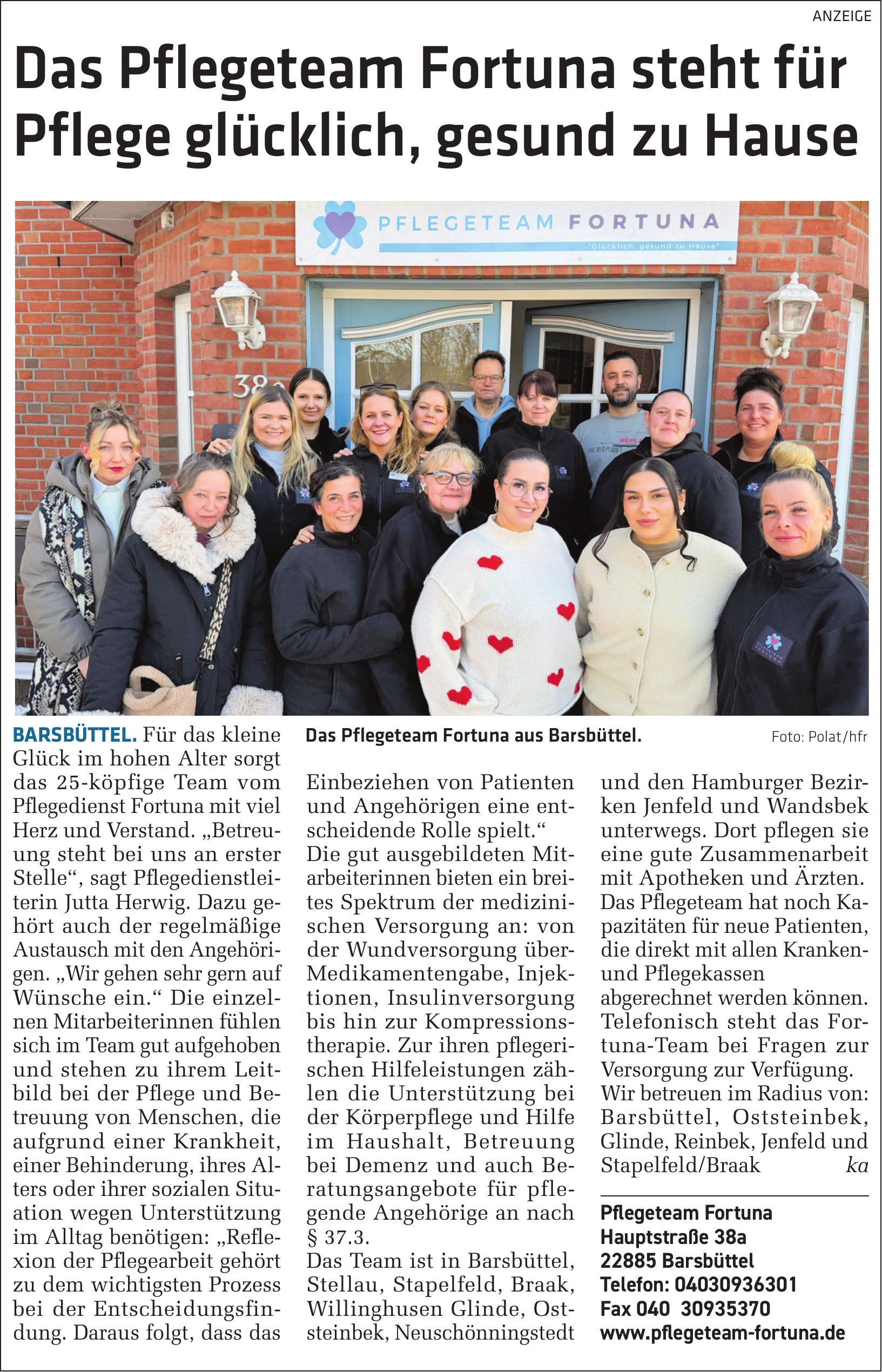 Pflegeteam Fortuna GmbH ist in der Region tätig, wobei die genauen Einsatzorte auf der Website nicht explizit genannt werden.