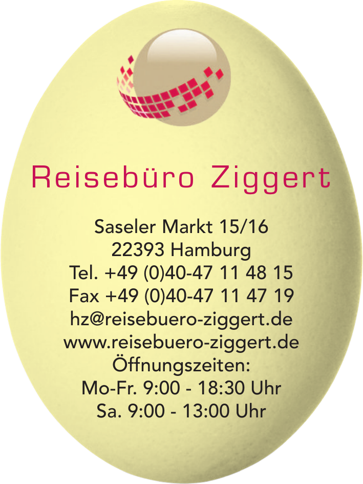 Das Reise- und Touristikteam Ziggert e.K. ist ein Reisebüro mit Sitz in Hamburg-Sasel und seit dem Jahr 2003 in der Organisation von Urlaubsreisen tätig. Als TUI Premium Partner begleitet das Unternehmen seine Kundinnen und Kunden von der Planung bis zur Rückkehr und übernimmt die komplette Reiseorganisation. Ziel ist es, den gesamten Ablauf rund um die Reise möglichst unkompliziert zu gestalten und eine durchgängige Betreuung zu gewährleisten.