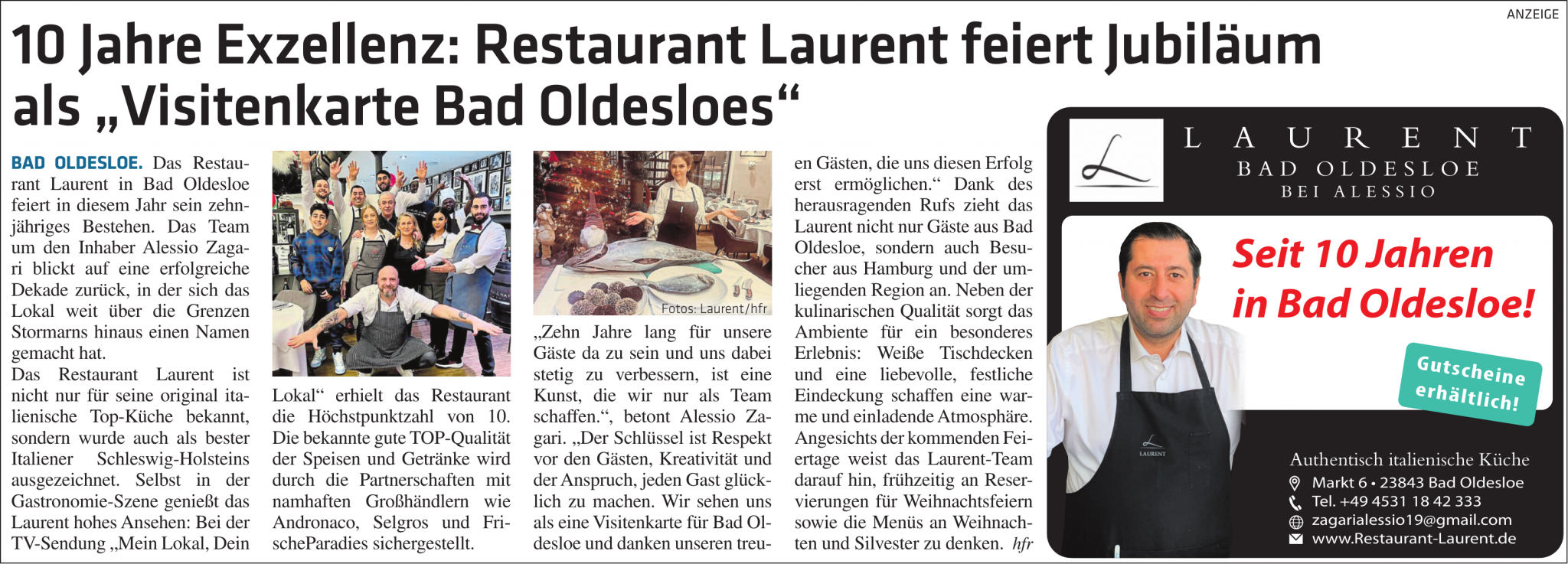 Restaurant Laurent bietet Süd Italienische Küche und Köstlichkeiten in Bad Oldesloe, in gemütlicher Atmosphäre und mit bestem Service. Jede Bestellung bereiten wir à la minute frisch für Sie zu.