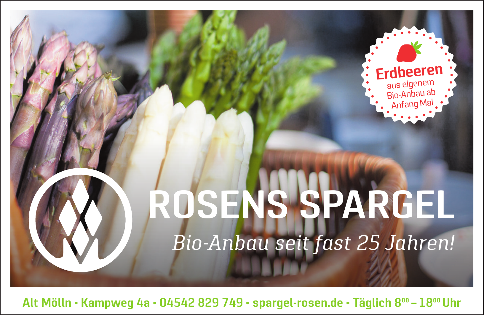 Die Rosen – Deutsche Spargelzucht mit Sitz in Alt-Mölln ist ein landwirtschaftlicher Betrieb im Herzogtum Lauenburg, der sich auf den Anbau und die Vermarktung von Spargel spezialisiert hat. Die Anbauflächen befinden sich in direkter Umgebung des Ortes, wodurch kurze Wege und eine unmittelbare Verarbeitung der Ernte gewährleistet werden. Der Betrieb ist Teil der regionalen Spargelproduktion und beliefert neben dem eigenen Hofladen auch Restaurants, Bio-Läden und Marktstände in der Region, unter anderem im Raum Lübeck.