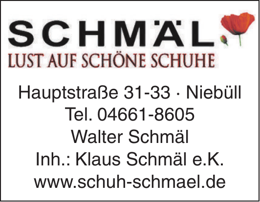 Schuhhaus Schmäl befindet sich in der Hauptstraße 31 – 33, 25899 Niebüll.
