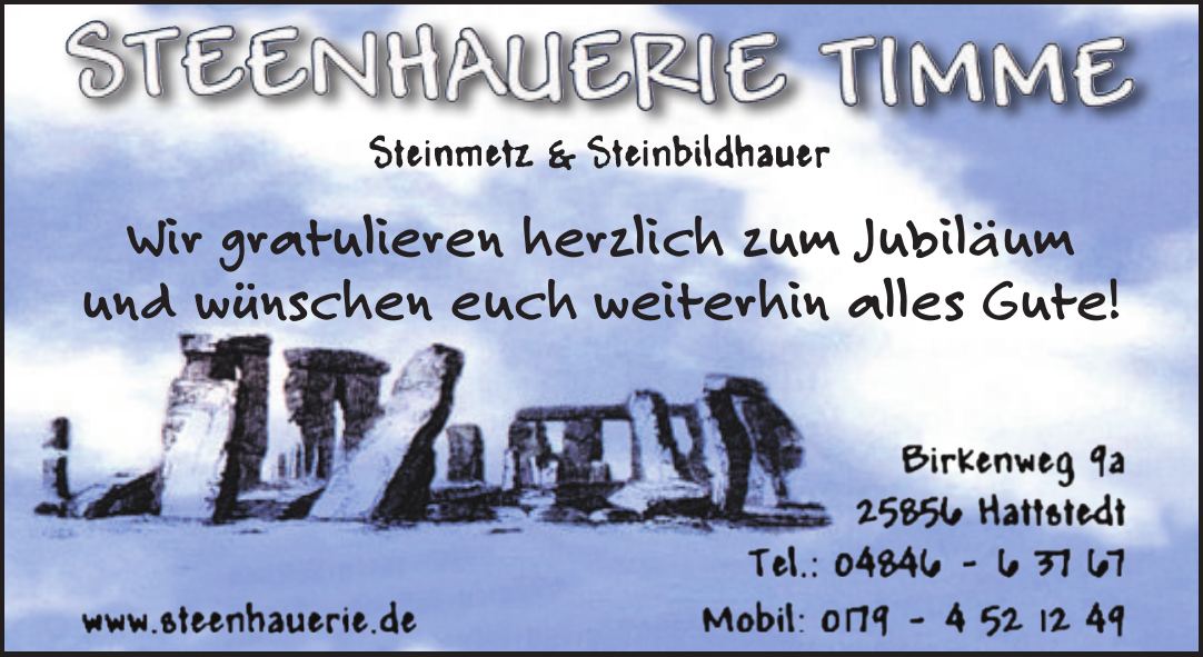 Die Steenhauerie Timme übernimmt die Beratung, Herstellung und Pflege von Grabmalen. Sie fertigt individuelle Grabsteine, Grabkreuze und Grabplatten nach Kundenwunsch und kümmert sich auch um die Grabsteinpflege.