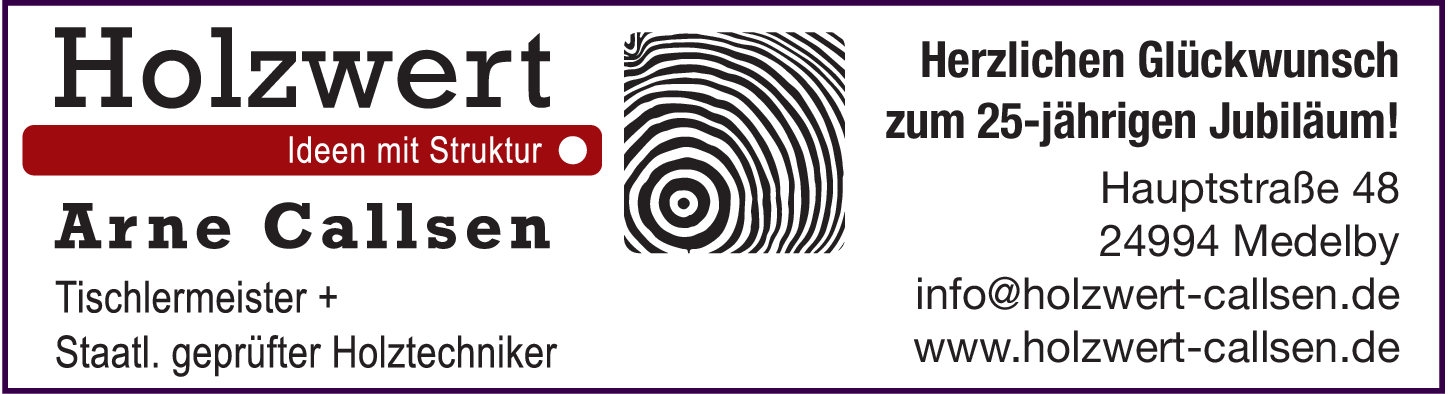 Die Tischlerei Holzwert Callsen, unter der Leitung von Arne Callsen, einem erfahrenen Tischlermeister und staatlich geprüften Holztechniker, bietet seit Jahren erstklassige Handwerkskunst in Medelby und Umgebung. Mit ihrer Manufaktur in der Hauptstraße 48, 24994 Medelby, ist die Tischlerei ein fester Bestandteil der regionalen Handwerkslandschaft. Kunden können sich auf eine persönliche Beratung und maßgeschneiderte Lösungen verlassen, die ihren individuellen Bedürfnissen gerecht werden. Exklusive Dienstleistungen und Angebote bei Tischlerei Holzwert Callsen