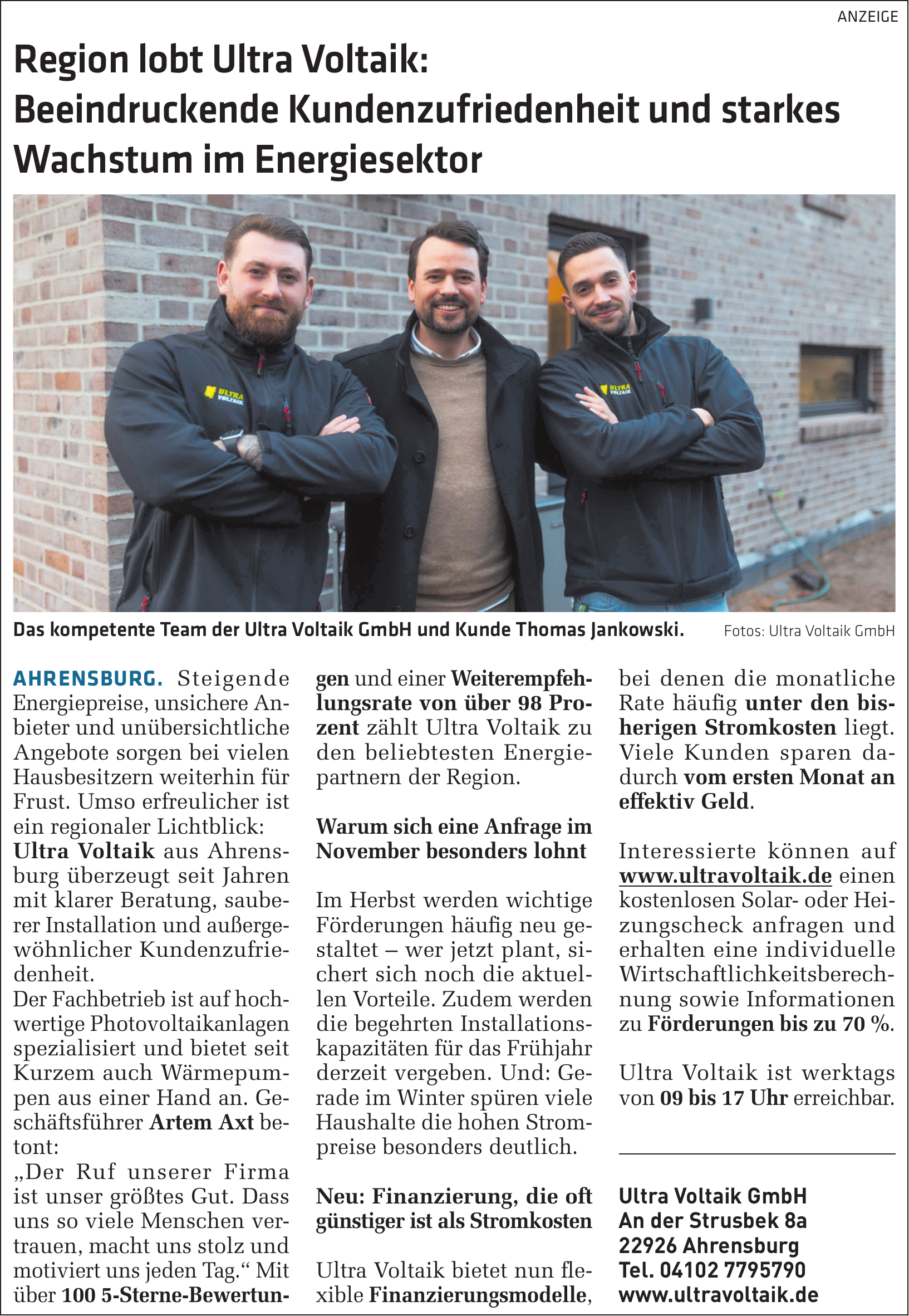 Ultra Voltaik GmbH analysiert die Bedürfnisse, plant die Anlagen, führt die Montage und Anmeldung durch, kümmert sich um die Bürokratie und bietet einen festen Ansprechpartner während des gesamten Prozesses.