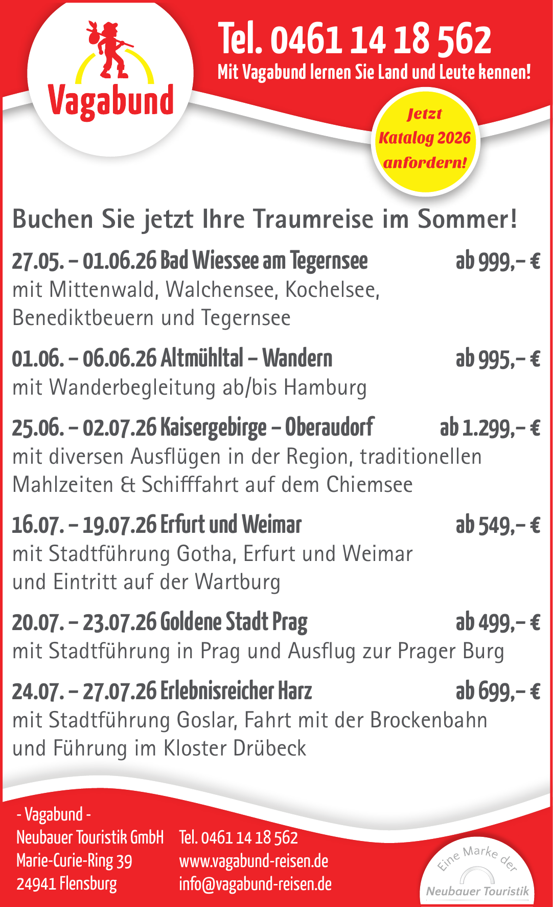 Der Hauptsitz von Vagabund Reisen befindet sich in Flensburg, genauer gesagt im Marie-Curie-Ring 39, 24941 Flensburg.