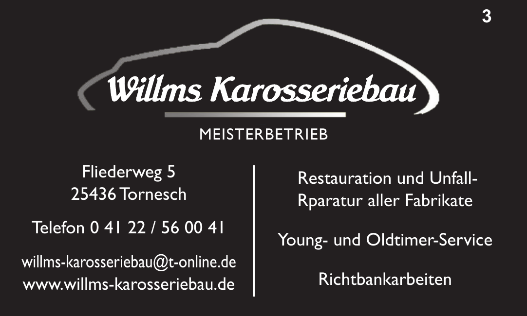 Willms Karosseriebau, ansässig im Fliederweg 5 in Tornesch, hat sich seit seiner Gründung durch Olaf Willms im Jahr 1994 als eine feste Größe in der Region etabliert. Ursprünglich in kleinen Verhältnissen gestartet, erfolgte bereits 1996 der Umzug nach Seeth-Ekholt und schließlich 1999 die Ansiedlung am heutigen Standort. Durch einen Neubau wurden die Kapazitäten deutlich erweitert, sodass das Unternehmen heute mit modernen Maschinen und Geräten qualifizierte Arbeiten rund um das Auto anbietet.